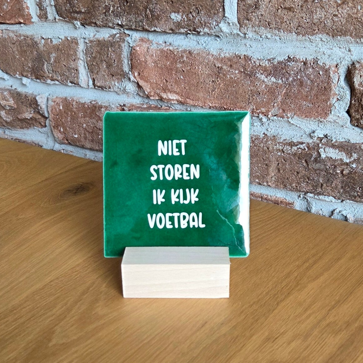 Ben jij of ken jij iemand die tijdens een wedstrijd totaal onbereikbaar is? Dan is dit tegeltje met de tekst “Niet storen, ik/wij kijk(en) voetbal” een absolute must-have. Een grappig en herkenbaar cadeau voor iedere voetbalgek die tijdens de 90 minuten (plus blessuretijd) met niets anders bezig wil zijn.