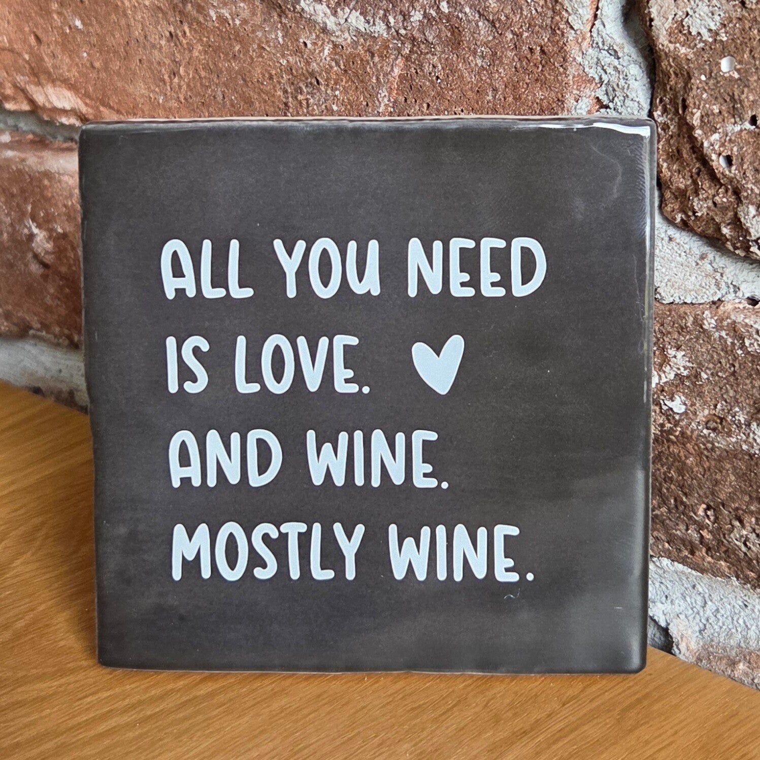 Home / Tegeltjes / Tegeltjes met vinyl / Tegeltje 'all you need is love. and wine. mostly wine.'