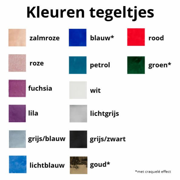 Let op: de tegeltjes zijn bedoeld als decoratie. Het tegeltje kan niet zo goed tegen vocht en dient daardoor alleen binnen gebruikt te worden. Schoonmaken kan met een droge doek.