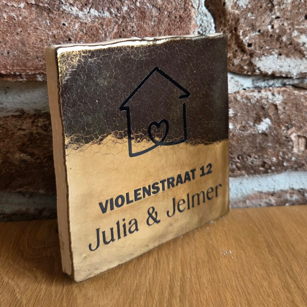 Verras nieuwe huiseigenaren met dit unieke tegeltje ‘Woning’ – hét gepersonaliseerde housewarming cadeau dat zorgt voor een warme en persoonlijke touch in hun nieuwe huis. Dit handgemaakte keramieken tegeltje is ideaal om een mooi plekje te geven in de hal, woonkamer of keuken, en vormt zo een blijvende herinnering aan dit bijzondere moment.