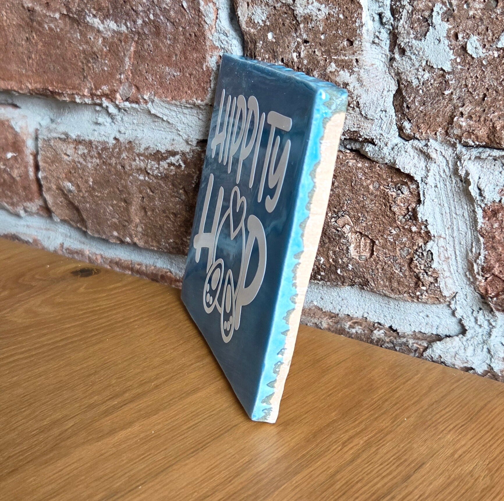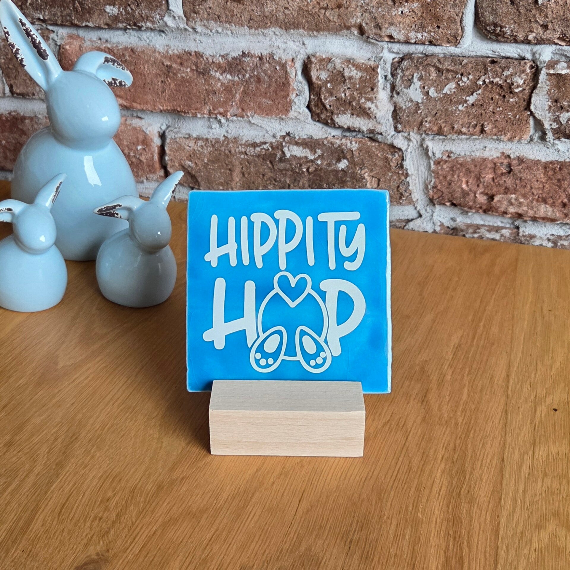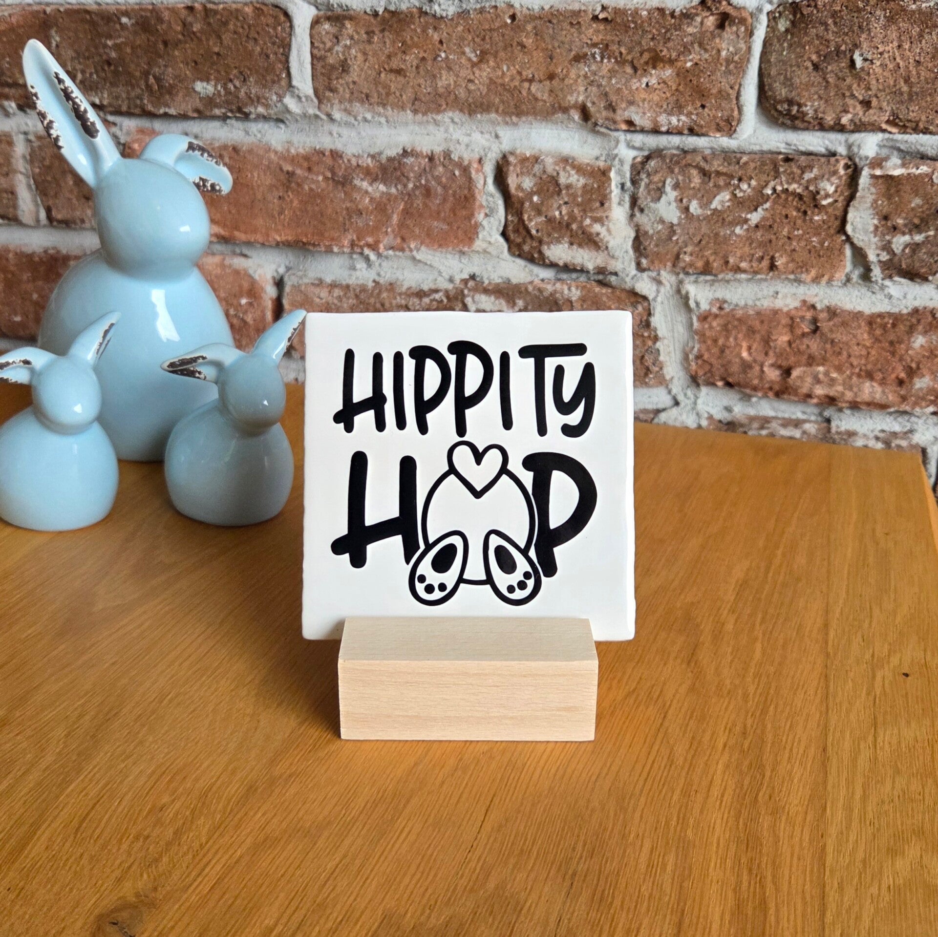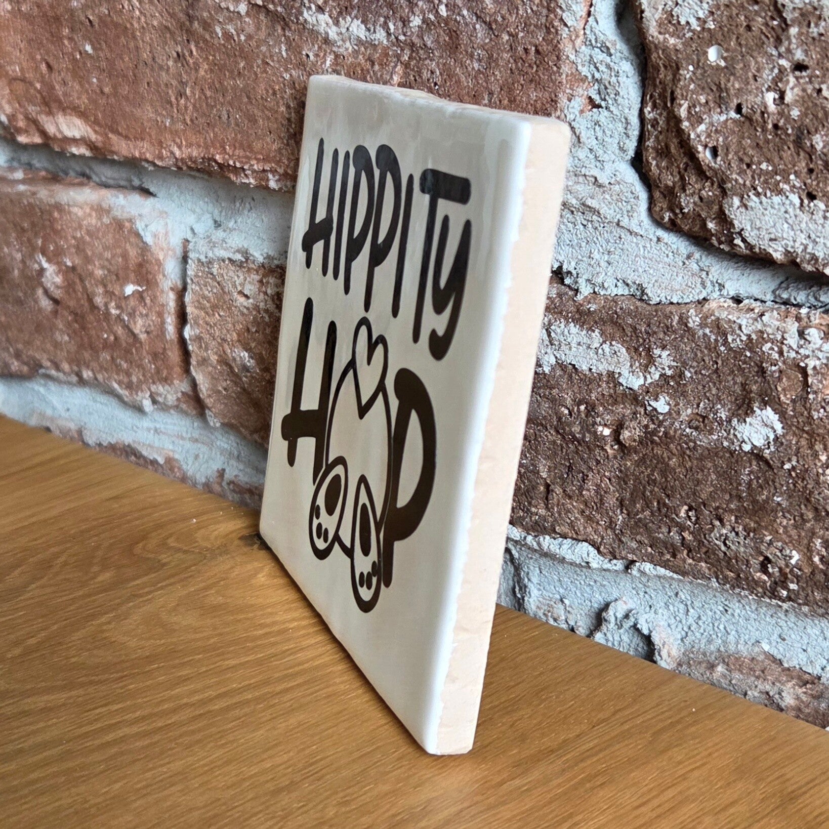 Vier Pasen met dit schattige tegeltje 'hippity hop' van Made by ME. Dit vorlijke tegeltje met een knipoog brengt direct de paassfeer in huis. Perfect om neer te zetten als decoratie op de vensterbank, tafel of in een paasmandje of als klein, origineel cadeautje voor familie en vrienden.